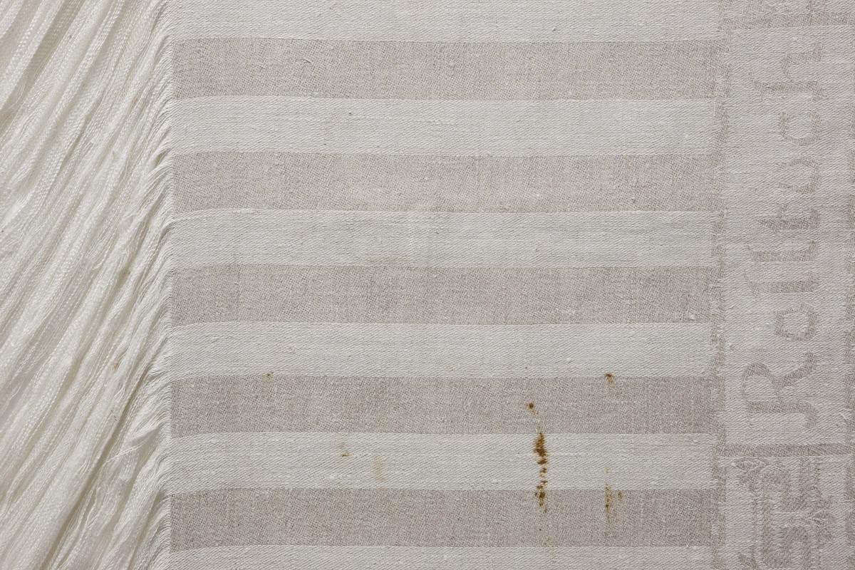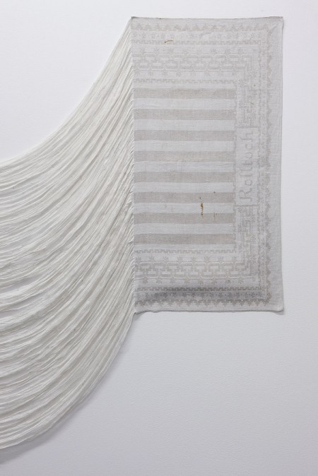 The second-hand cloth made in the 1920’s Germany has been unravelled. The fabric does not look clean because of some stain marks that show its long history. The reason why I often choose the old fabric is that I became attracted to the fabrics made in this era in Germany thanks to its excellent quality. I first came across these well-made fabrics when I was strolling through a Sunday market in Berlin. I asked shop staff how old these fabrics were when I found this kind of fabric in one store. When I was told that it was nearly 100 years old I could not believe it. But I eventually came to believe her because shopkeepers in other stores also said the same. It was nearly 100 years old and made around 1910-30. The period was before the rise of Nazism and it seemed that the qualities of fabrics before and after the emergence of Nazism are very different. Since the discovery, I have been collecting this kind of daily-use fabrics made prior to 1930.